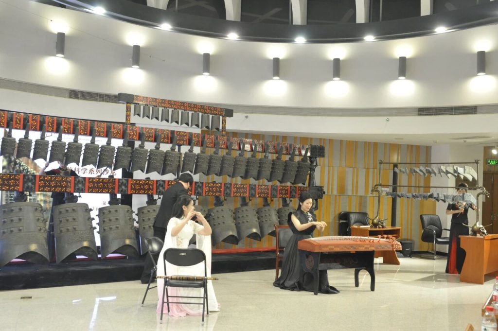 Mr. Long Wen from the Wuhan Conservatory of Music shared his unique experience from long-term performance of the bianzhong and introduced the development of bianzhong teaching and performances at the conservatory. At the conclusion of the event, faculty and students from the Wuhan Conservatory of Music performed several modern pieces live, using replicas of ancient instruments such as the Marquis Yi of Zeng bianzhong and bianqing, accompanied by flutes and se (a zither-like instrument). Five audience members and the performers wore EEG devices to record prefrontal brain signals, with the aim of analyzing attentional states and subjective experiences. After the performance, the audience engaged in a lively interaction with the guest speakers.